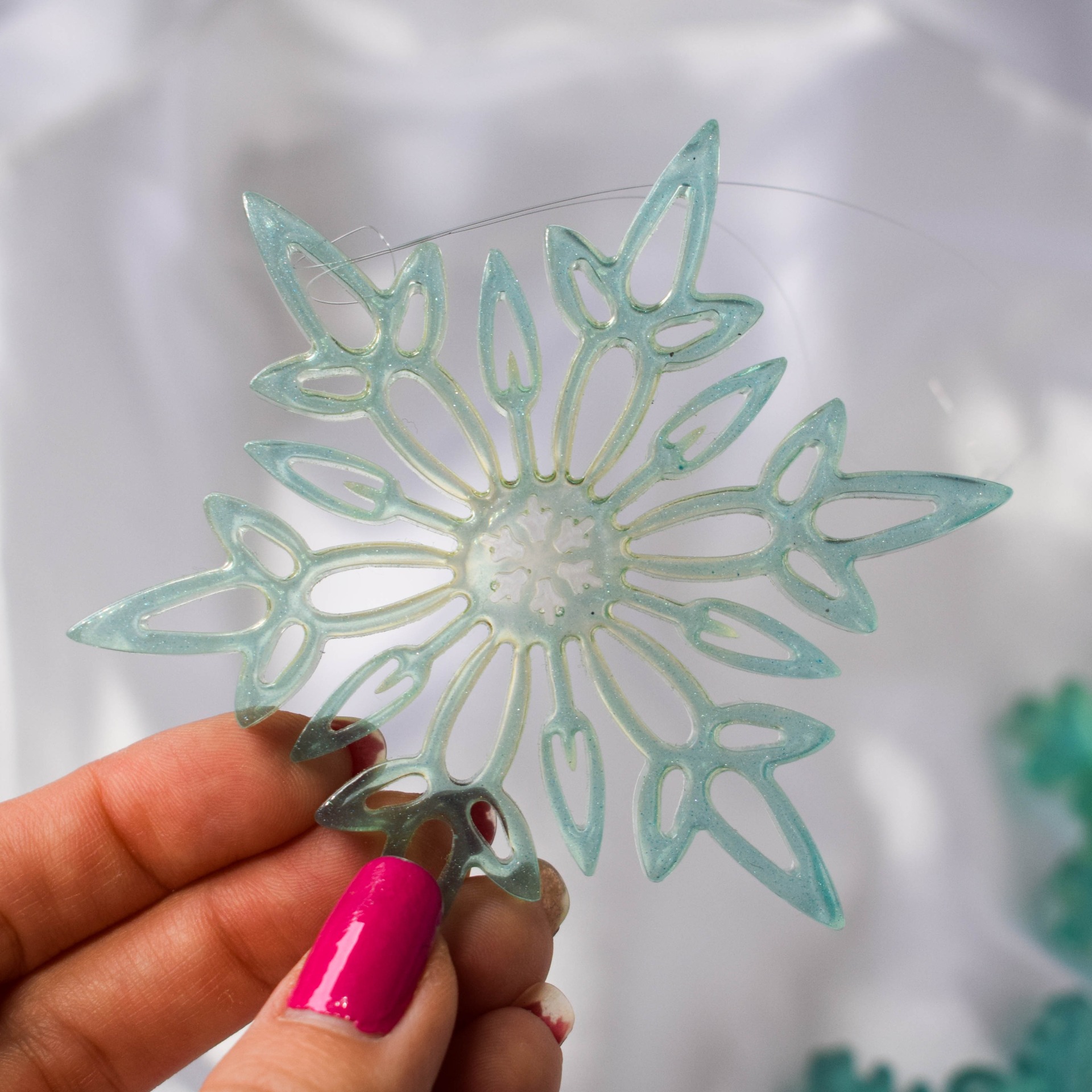 Na vločkách bude přivázán vlasec k pověšení.