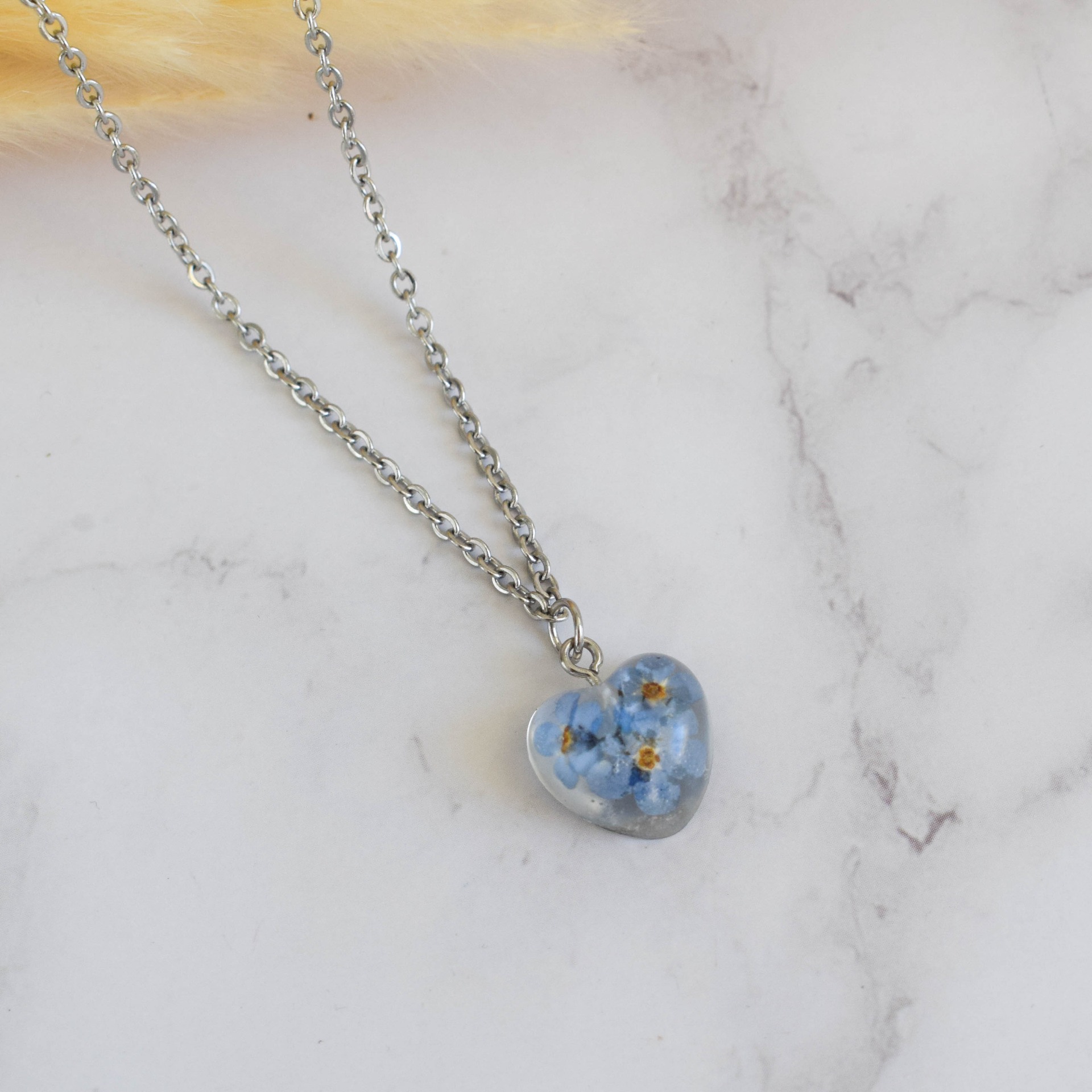 - Materiál přívěsku: Epoxidová pryskyřice se sušenými pomněnkami