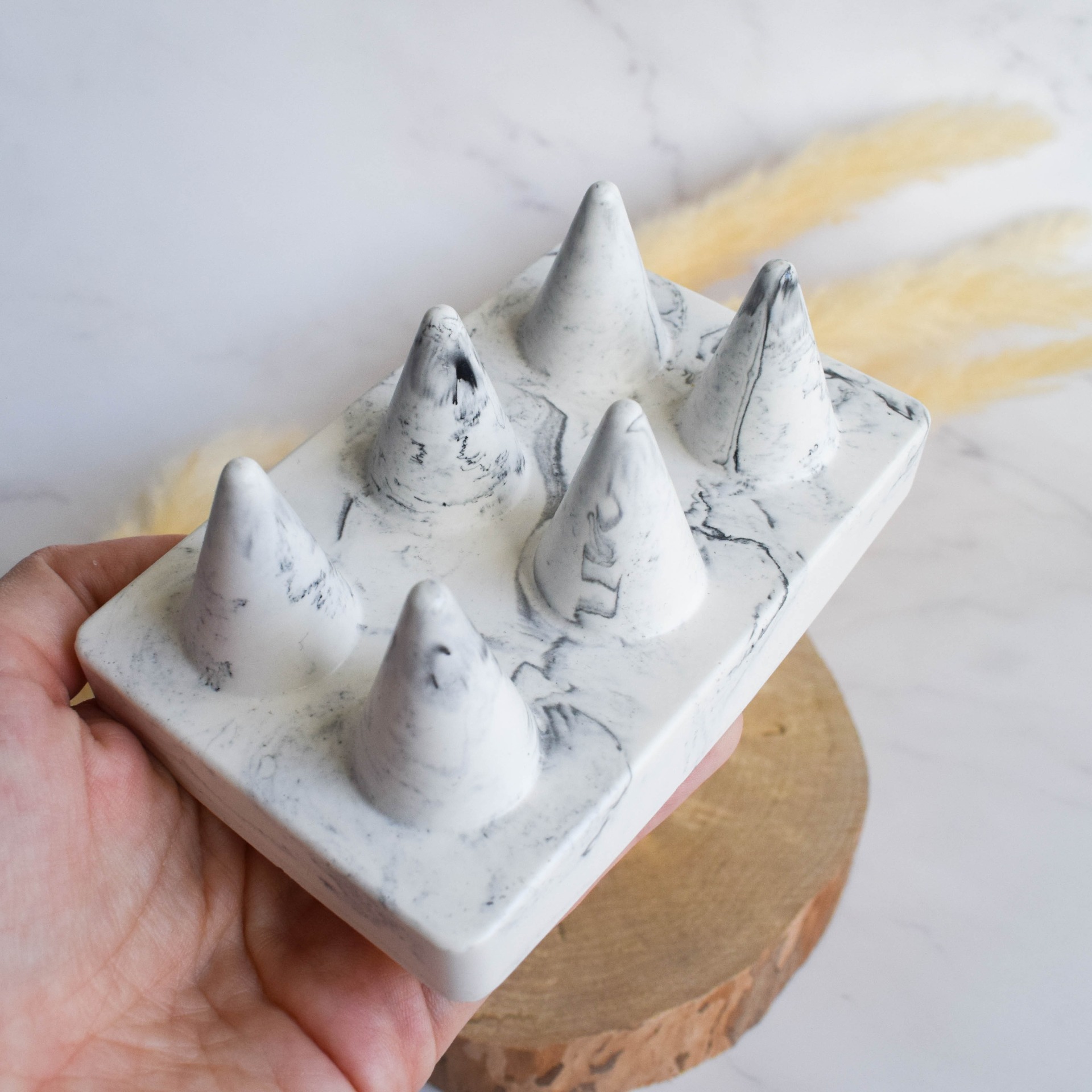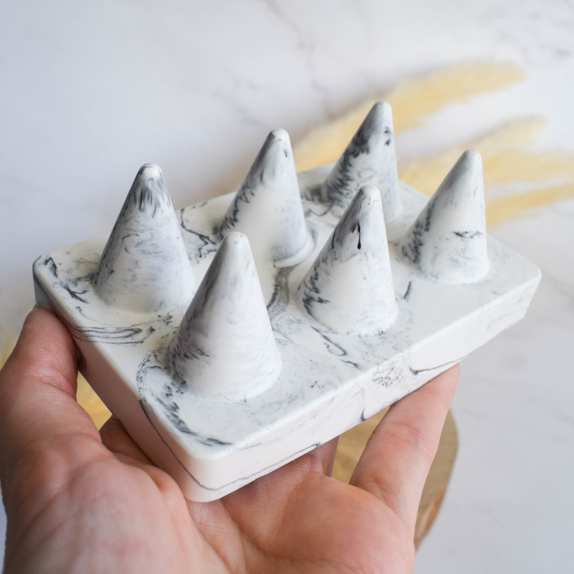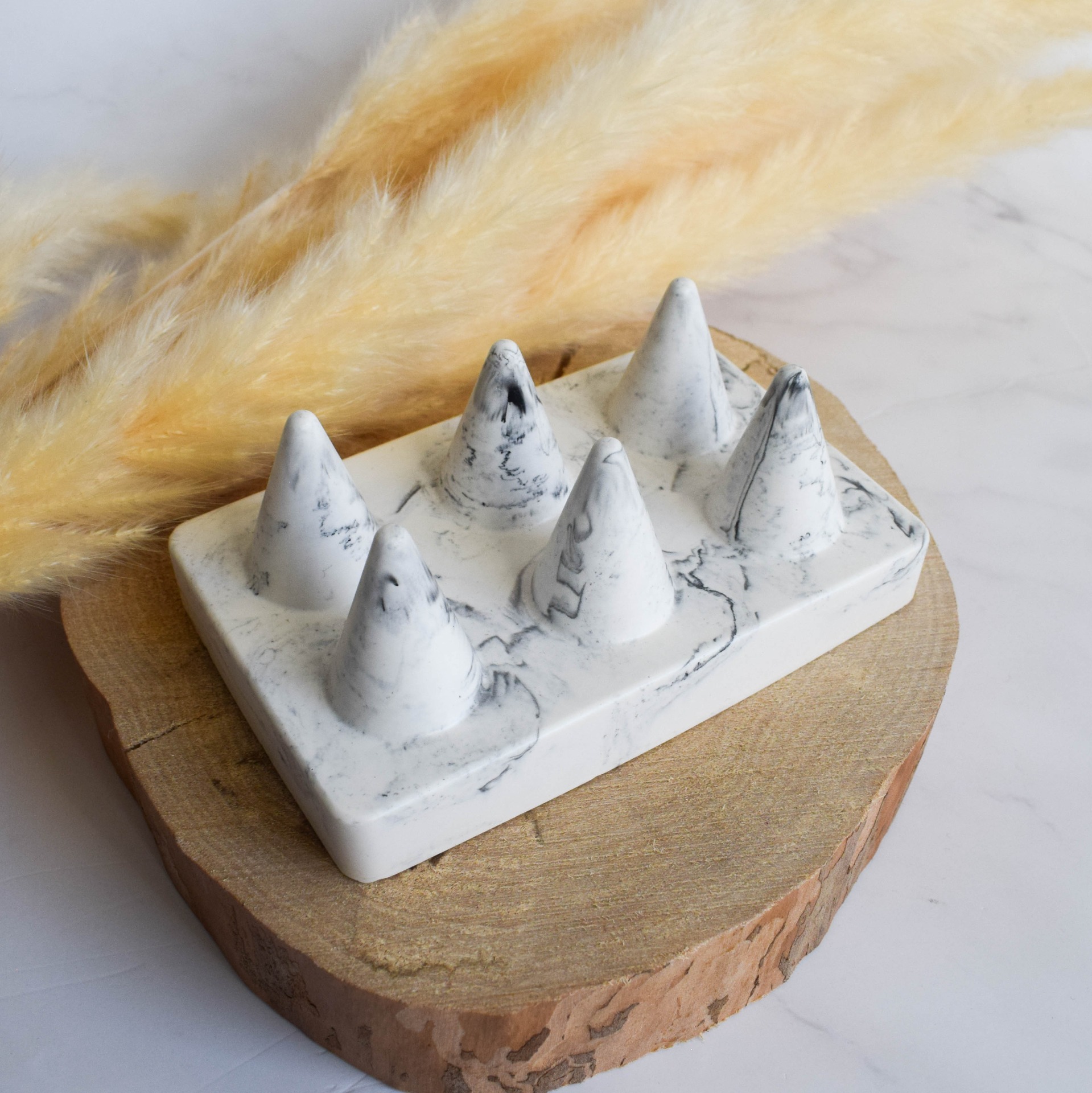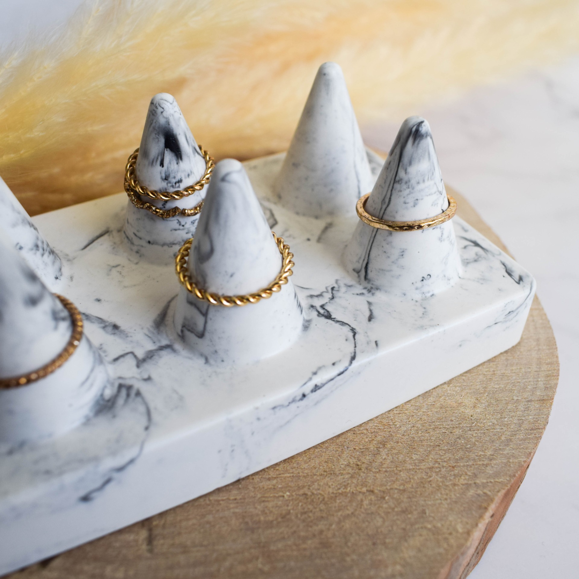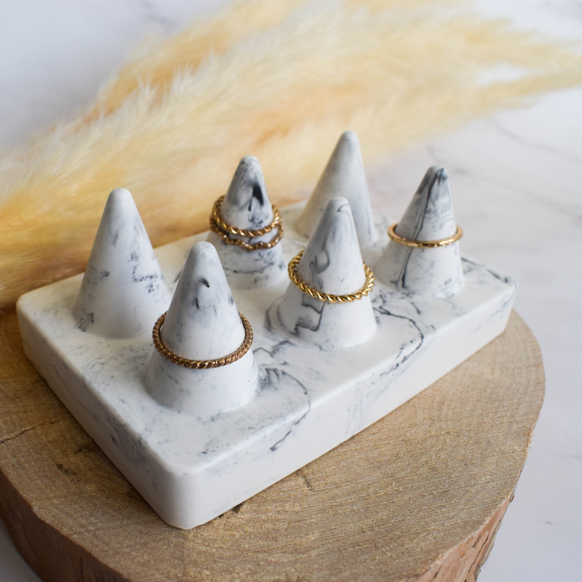 Uchovávejte své prstýnky stylově s tímto stojanem na prstýnky. V mramorovém provedení, který mu dodává exkluzivní vzhled a nadčasovou eleganci.