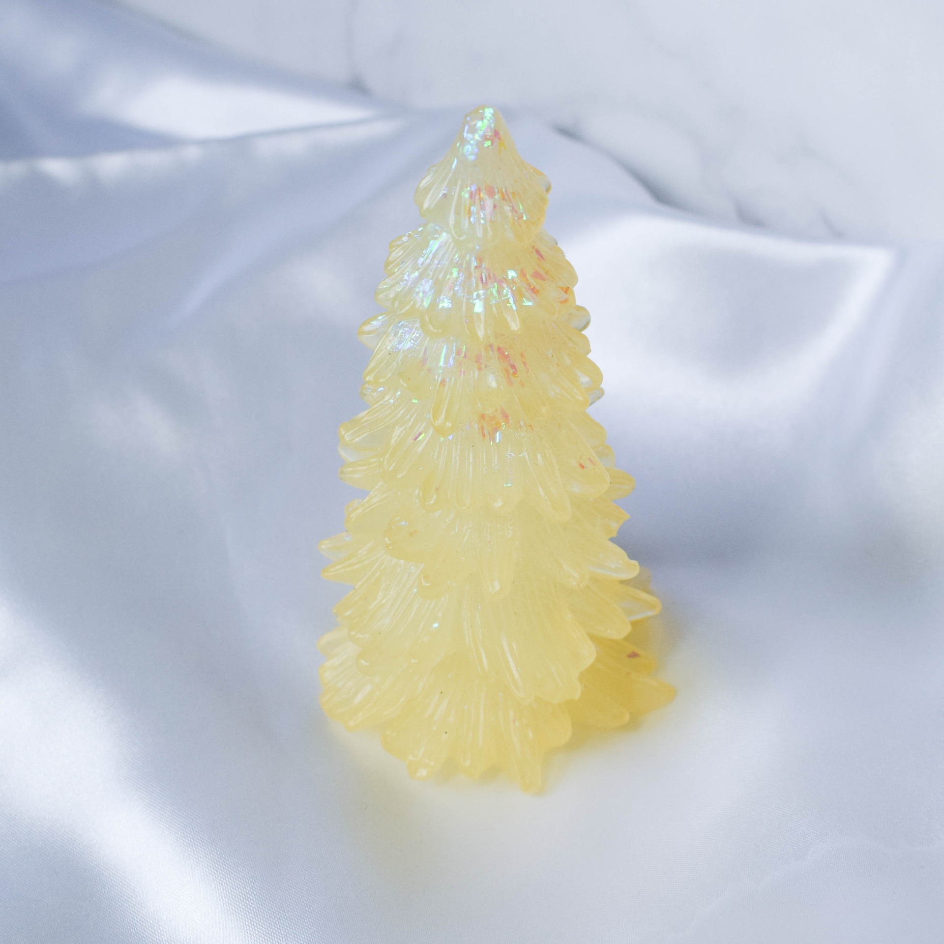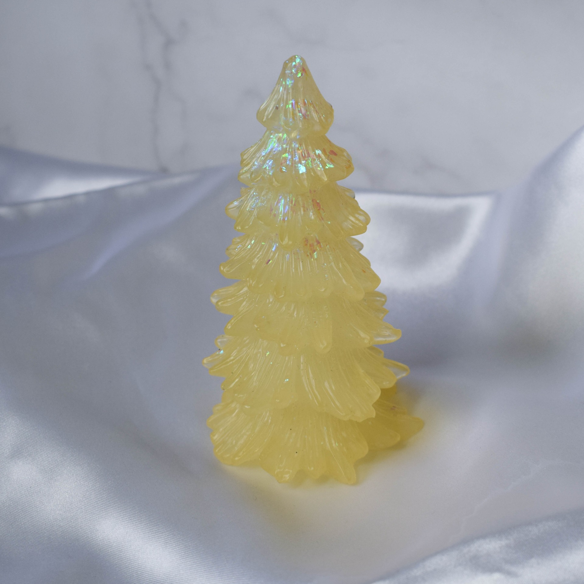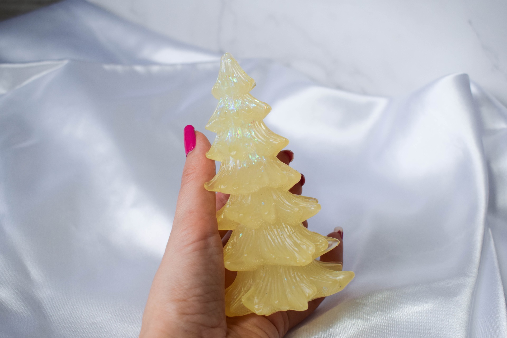 Dekorace v podobě stromečku z epoxidové pryskyřice. V provedení s holografickými plátky u špičky.