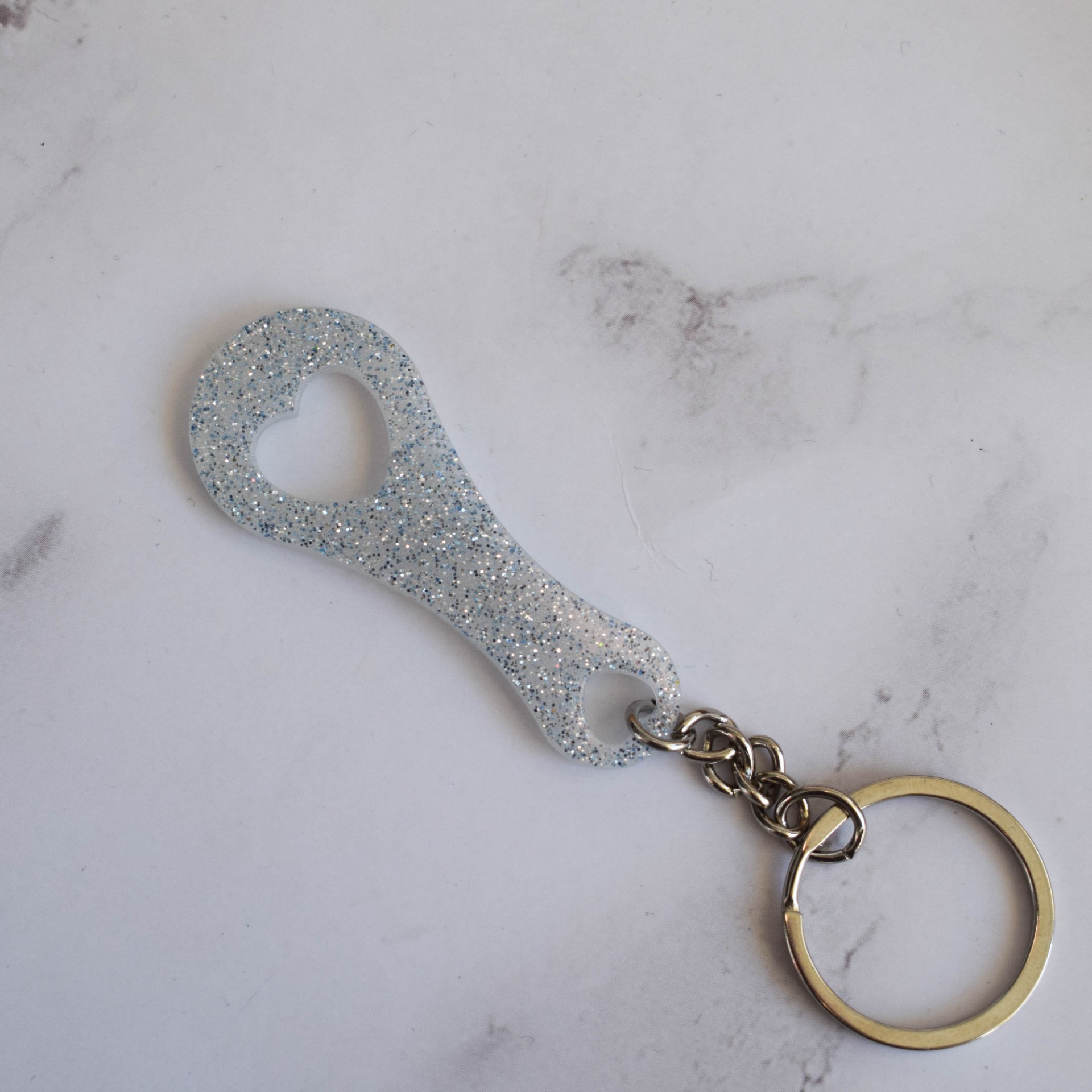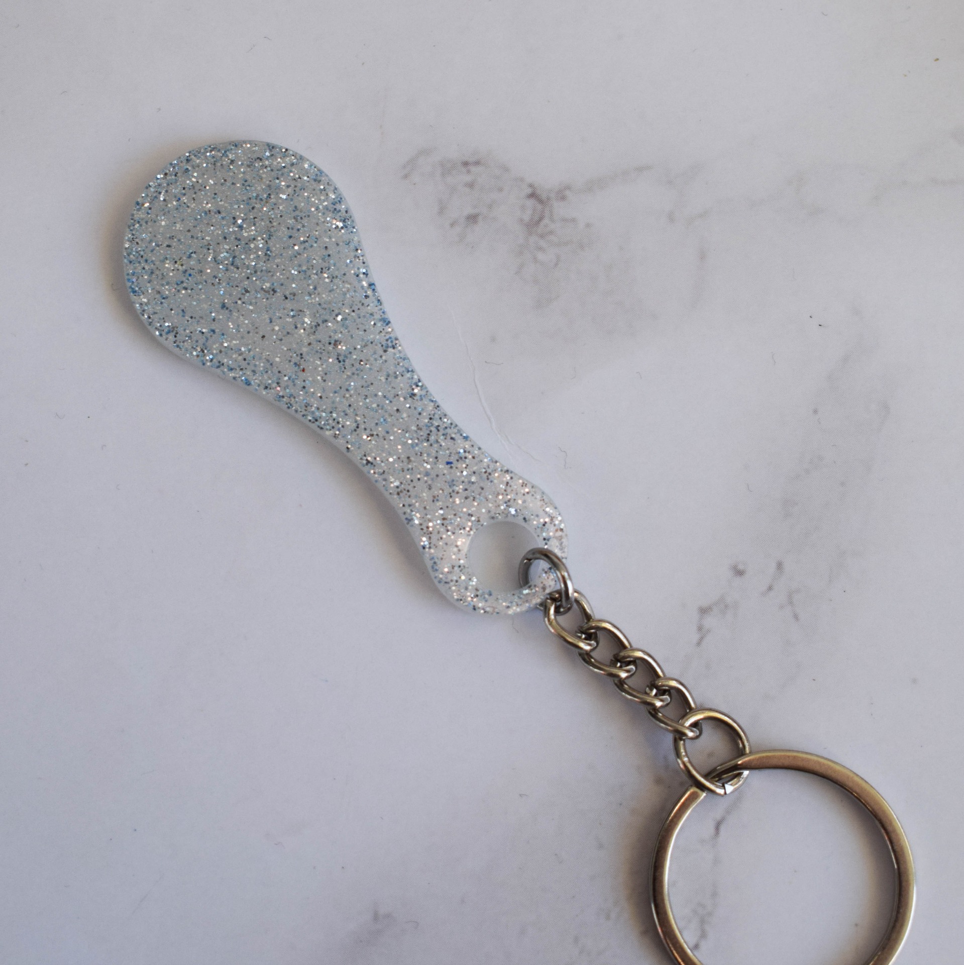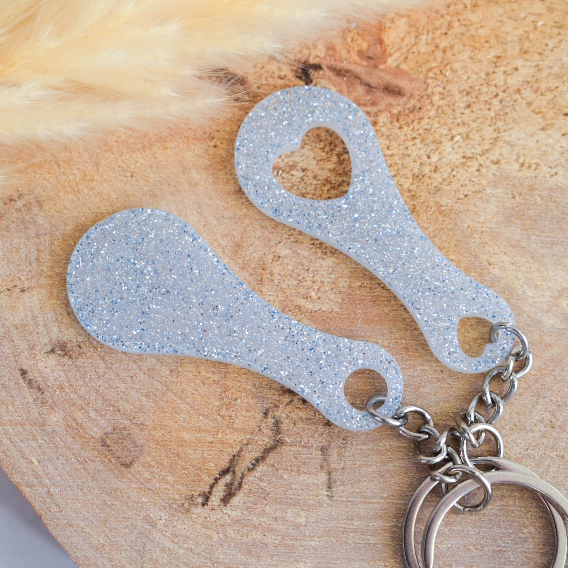 Žetonek do nákupního košíku v designu bílé s lehce modrými třpytkami.