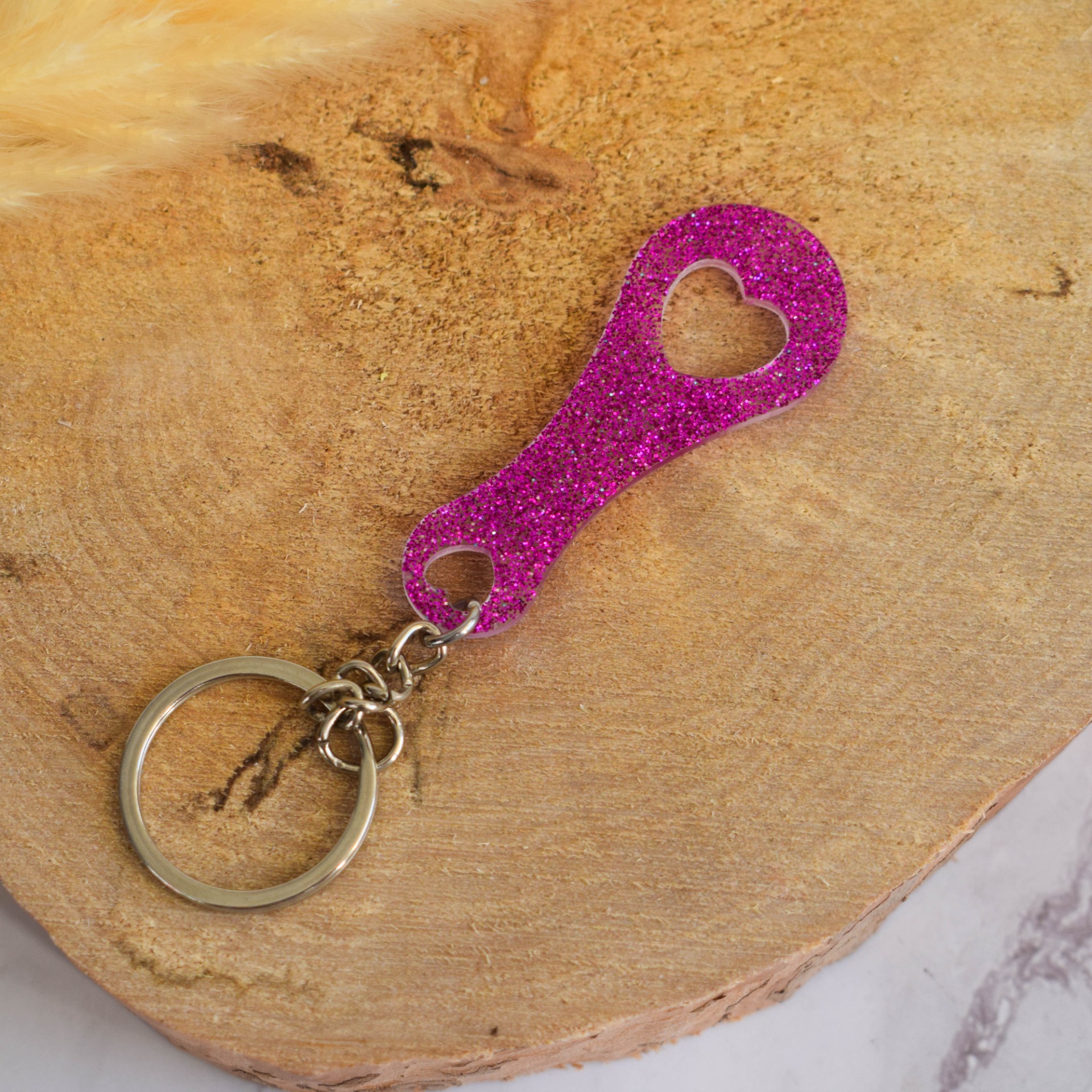 Žetonek do nákupního košíku v designu bílé s růžovými třpytkami. Žetonek má v sobě výřez srdíčka.